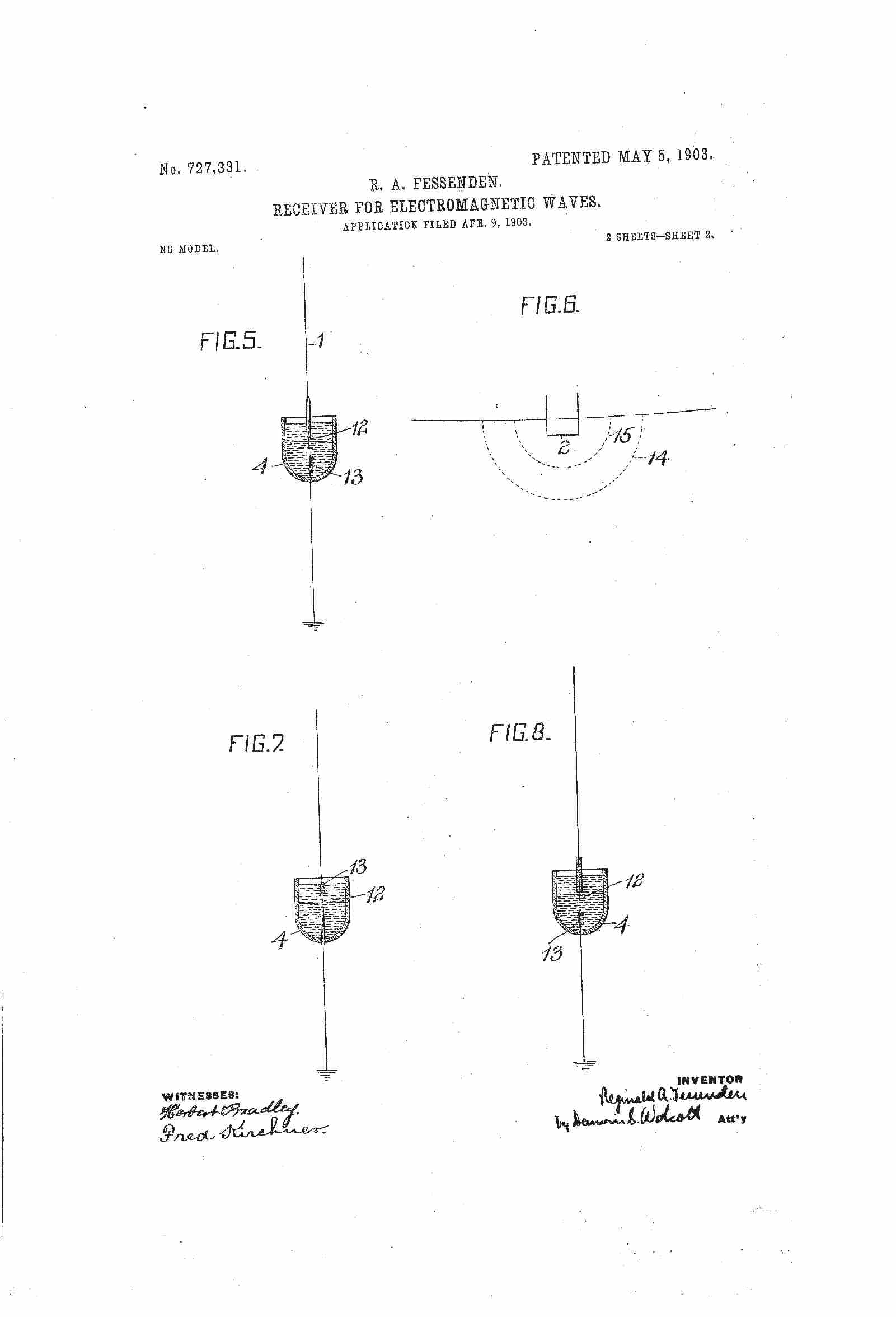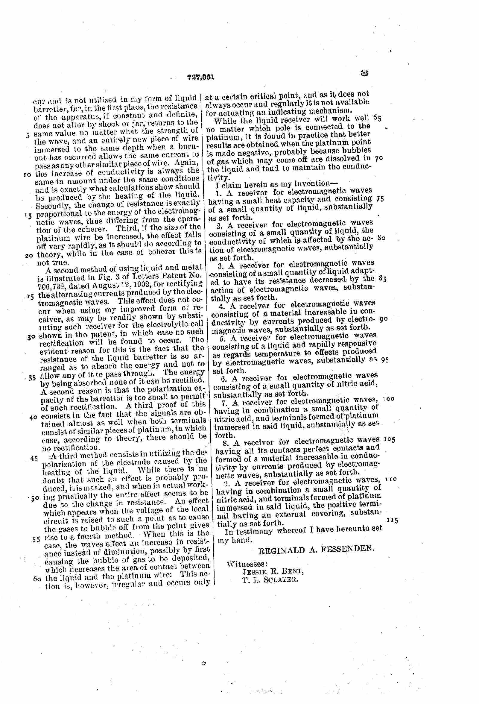 Brevet USA 727331 Récepteur pour les ondes électromagnétiques 05 mai 1903