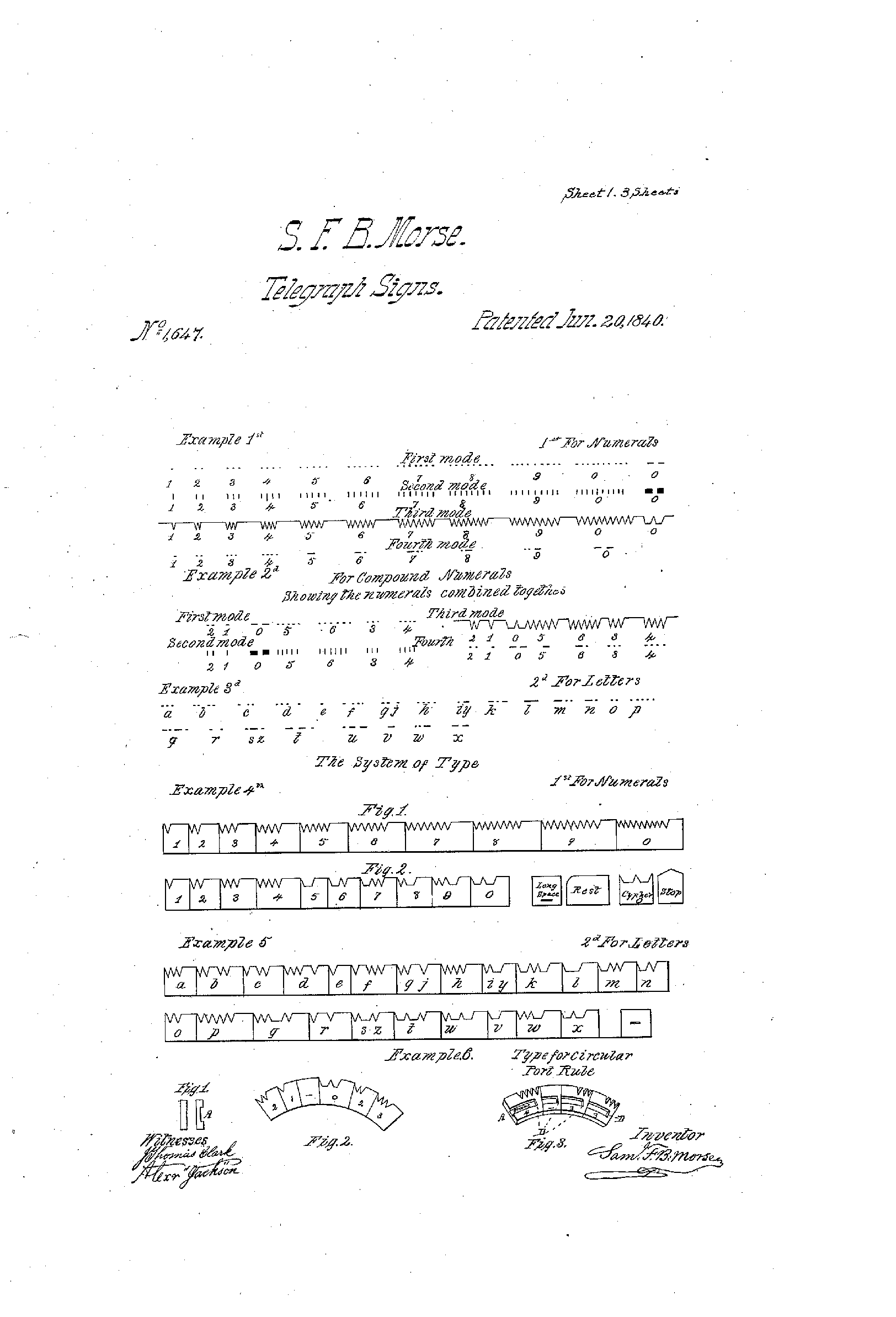 Patent USA N° 1647 Telegraph Signs of June 20, 1840